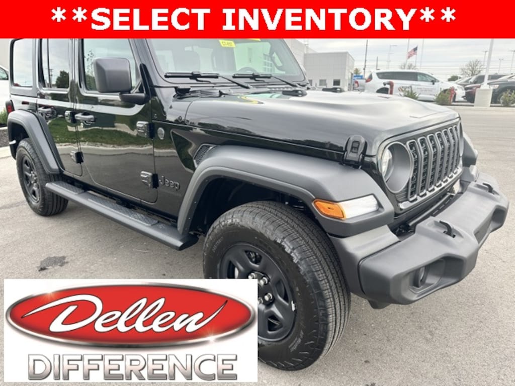 **AT DELLEN CDJR - WE ONLY ADVERTISE PRICES WITH REBATES THAT EVERYONE QUALIFIES FOR!! - IT'S A BETTER WAY TO BUY YOUR VEHICLE - IT'S THE DELLEN WAY! 4-Wheel Disc Brakes, 8 Speakers, ABS brakes, Air Conditioning, AM/FM radio: SiriusXM with 360L, Apple CarPlay/Android Auto, Aux Battery, Black 3-Piece Hard Top, Brake assist, Compass, Deep Tint Sunscreen Windows, Delay-off headlights, Driver door bin, Driver vanity mirror, Electronic Stability Control, Freedom Panel Storage Bag, Front fog lights, Front reading lights, Illuminated entry, Low tire pressure warning, MOPAR All-Weather Floor Mats, Mopar Black Tubular Side Steps, Normal Duty Suspension, Outside temperature display, Panic alarm, ParkView Rear Back-Up Camera, Power steering, Power windows, Quick Order Package 22B Sport, Radio data system, Rear reading lights, Rear Window Defroster, Rear Window Wiper/Washer, Remote keyless entry, Speed control, Steering wheel mounted audio controls, Stop-Start Dual Battery System, Tachometer, Telescoping steering wheel, Tilt steering wheel, Traction control, Variably intermittent wipers, Wheels: 17" x 7.5" Black Steel Styled.